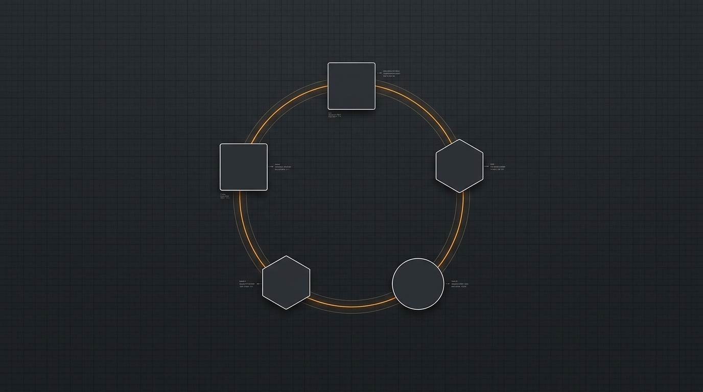 Se desenhar isso num quadro branco, é uma versão expandida da figura que a Anthropic publica como agentic loop. A diferença é que cada uma das cinco etapas é um sistema com responsabilidade própria, testes próprios e modos de falha próprios.